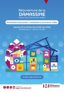 Pour consulter le programme, cliquez sur le lien suivant: https://www.agglo-montbeliard.fr/fileadmin/mediatheque/Editos/Vivre_ici/La_preservation_du_territoire/La_Damassine/Programme_Reouverture_Damassine_22_et_23_fevrier_2025.pdf